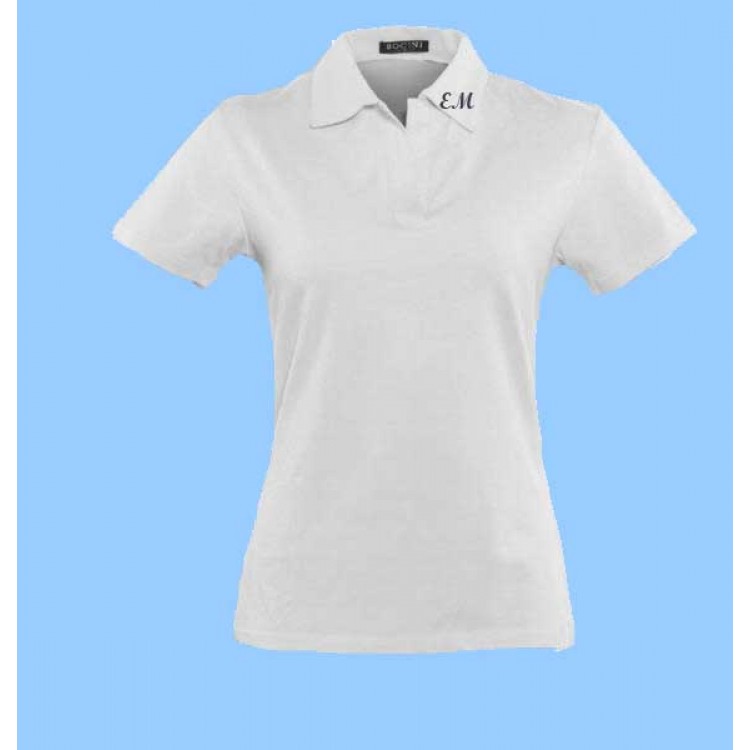 MAI253 Girls Lycra White Short Sleeve Polo with EM initials