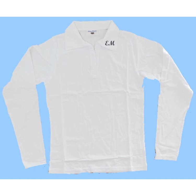 MAI254 Girls Lycra White Long Sleeve Polo wth EM initials embroidered
