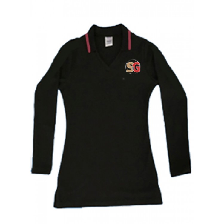 SG1003 Long Sleeve Black V Neck fitted Polo with school logo