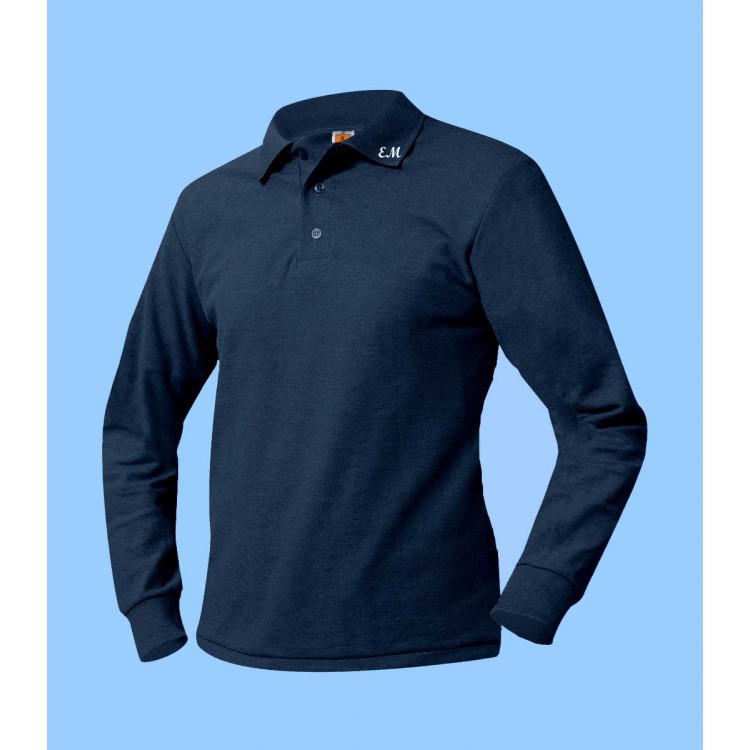 MMM7003 - Ladies Navy Long Sleeve Piqué Polo with Maimonide Initials on Collar