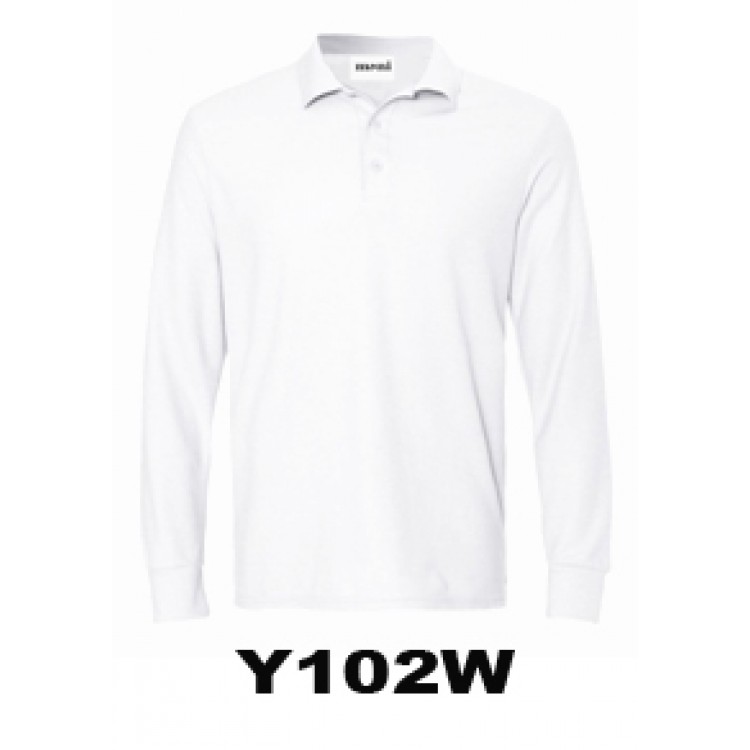 Y102W- WHITE LONG SLEEVE POLO- MONI LABEL