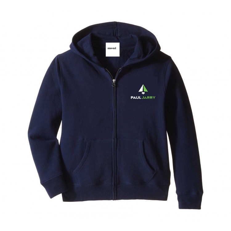PJ4080 Navy Zip Hoodie with Kangaroo Pockets and school logo