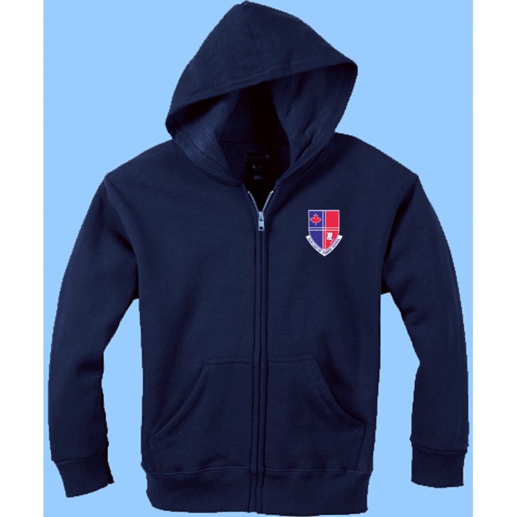 POM4080 Navy Zip Hoodie with Kangaroo Pockets and school logo