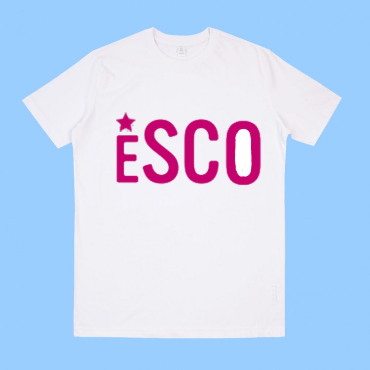 PSCO501 White Short Sleeve T-Shirt with Pink ESCO Print