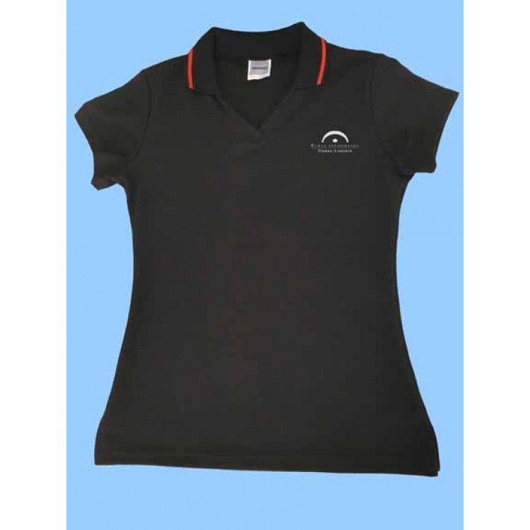 LAP1002 -Girls Black Short Sleeve V Neck Polo